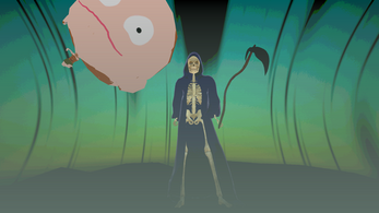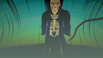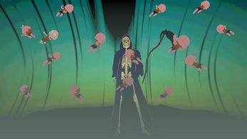 Death has come to take Hideous Kojira-san to the Underworld. However, the tricky old bugger has tricked Death itself by grabbing onto a falling baby.